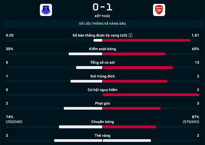 Có bàn thắng, Arsenal chơi chắc chắn và tập trung. Họ hạn chế Everton không có cú sút nào trong hiệp một. Tuy nhiên, hiệp hai diễn ra căng thẳng hơn với những pha tranh cãi về VAR.