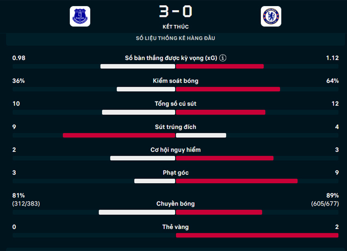 Everton tiếp đón Chelsea ở vòng 31 Ngoại hạng Anh với mục tiêu giành trọn 3 điểm để nuôi mộng dự cúp châu Âu mùa tới còn đội khách cũng khát khao điều tương tự. Tuy vậy, khác với một Everton tập trung và chơi nỗ lực ngay từ đầu thỉ Chelsea có vẻ vẫn chưa hồi phục tâm lý sau khi bị PSG loại khỏi Champions League.