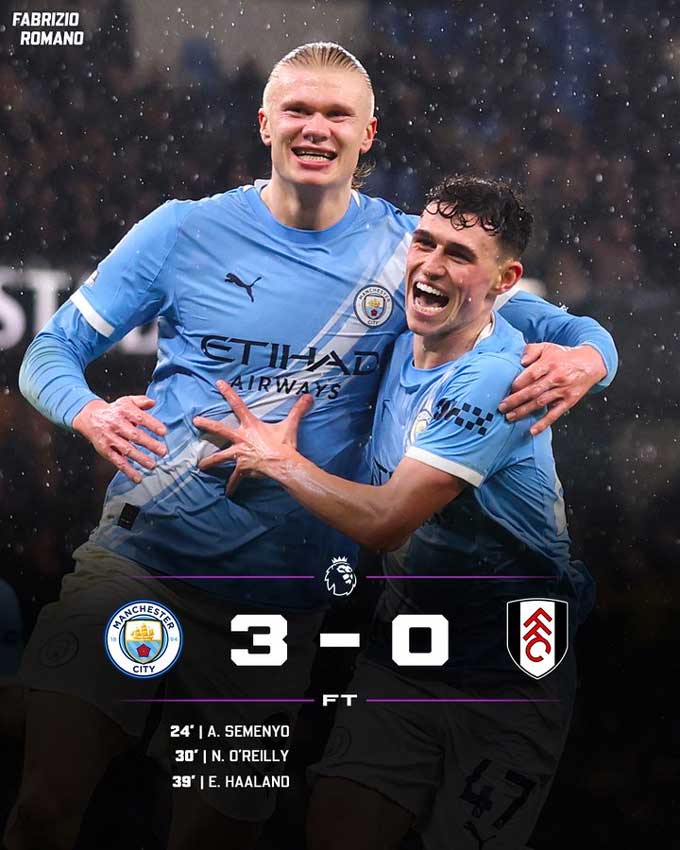Man City: Semenyo (24'), O’Reilly (30'), Haaland (39')