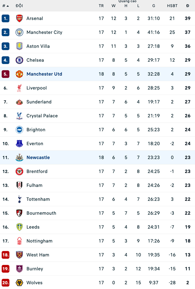 Đội hình thi đấu MU vs Newcastle