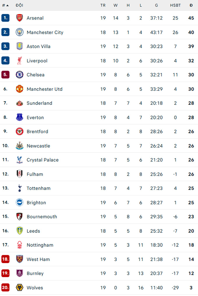 Kết quả này cũng khiến MU lỡ cơ hội chen chân vào Top 4 Ngoại hạng Anh. Hiện tại, Quỷ đỏ xếp thứ 6 với 30 điểm, kém Top 4 đúng 2 điểm. Như vậy, thầy trò Amorim đã khép lại năm dương lịch 2025 theo cách không như ý.
