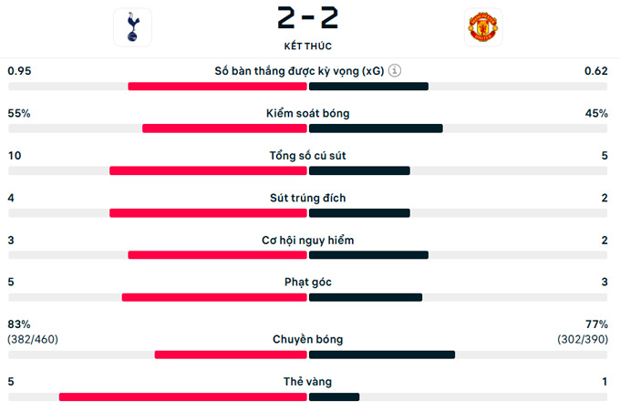 Ở quãng thời gian còn lại, Tottenham nỗ lực tấn công tìm kiếm bàn gỡ và họ thực ra đã tạo ra những giây phút điên rồ. Chỉ trong vòng 7 phút từ 84 đến 90+1, lần lượt Tel và Richarlison tỏa sáng để giúp Spurs dẫn ngược MU 2-1.