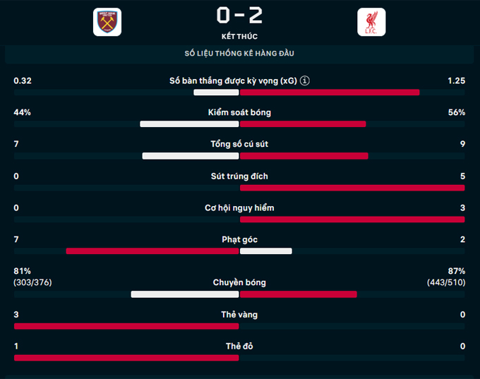 Chơi hơn người, Liverpool ghi thêm 1 bàn ở phút 90+2 nhờ công của Gakpo. Thắng chung cuộc 2-0, Liverpool tạm thời ngắt cơn khủng hoảng.