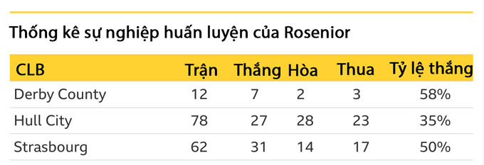 Đáng chú ý, ở mùa giải 2024/25, trong khi Rosenior đang giúp Strasbourg giành vé dự cúp châu Âu, thì Hull City chỉ có thể trụ hạng Championship nhờ hiệu số bàn thắng bại.