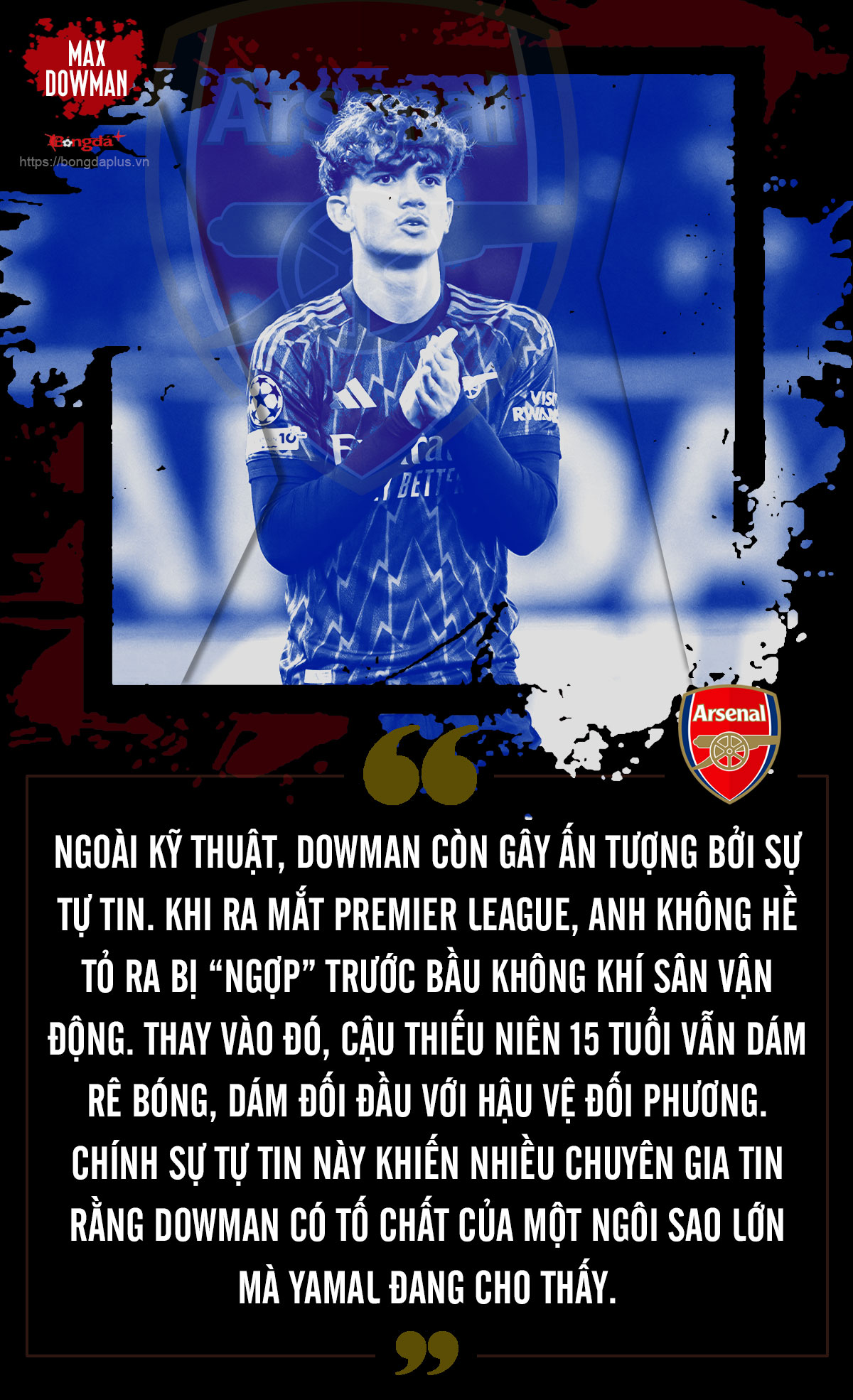 Điều quan trọng nhất với Dowman không phải là so sánh với ai, mà là tiếp tục phát triển đúng hướng. Nếu duy trì được sự tiến bộ hiện tại, cậu bé 15 tuổi của Arsenal hoàn toàn có thể trở thành một ngôi sao lớn của Arsenal, một trụ cột tương lai của đội tuyển Anh và có thể là một trong những tài năng xuất sắc nhất thế hệ mình.