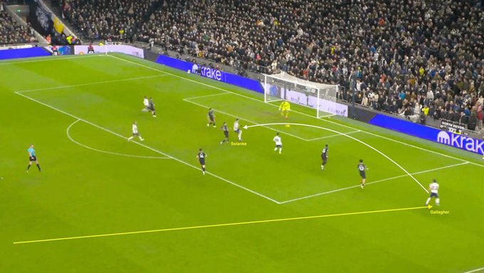 Ở chiều ngược lại, Gallagher mang đến một kiểu ảnh hưởng khác. Bàn thắng của Dominic Solanke vào lưới Man City cuối tuần trước sẽ không thể xảy ra nếu không có pha tranh chấp quyết liệt, bứt tốc và tạt bóng đầy nỗ lực của Gallagher bên cánh phải.