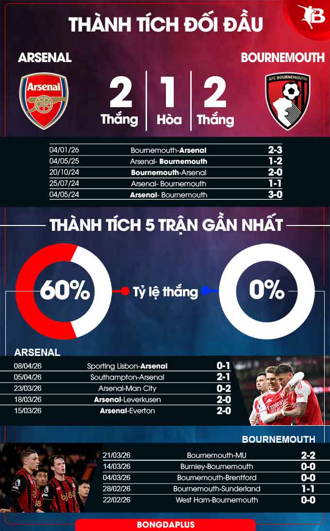 Bournemouth là đội bóng có lối chơi rõ ràng và thường xuyên tạo ra nhiều khó khăn cho những đối thủ lớn. Đừng quên là họ cũng từng đánh bại Arsenal ở 2/3 lần đụng độ gần nhất. Đây chắc chắn là đối thủ khó nhằn với Arsenal trong giai đoạn Pháo thủ liên tục có những trận cầu quan trọng ở cả Premier League và Champions League.