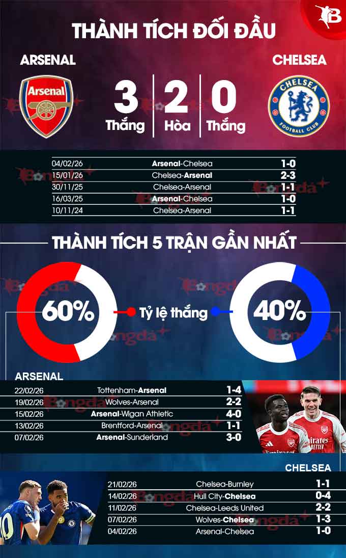 Phân tích phong độ Arsenal vs Chelsea