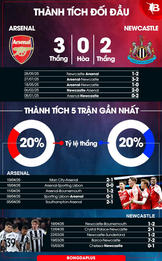 BONGDAPLUS dự đoán tỉ số Arsenal vs Newcastle