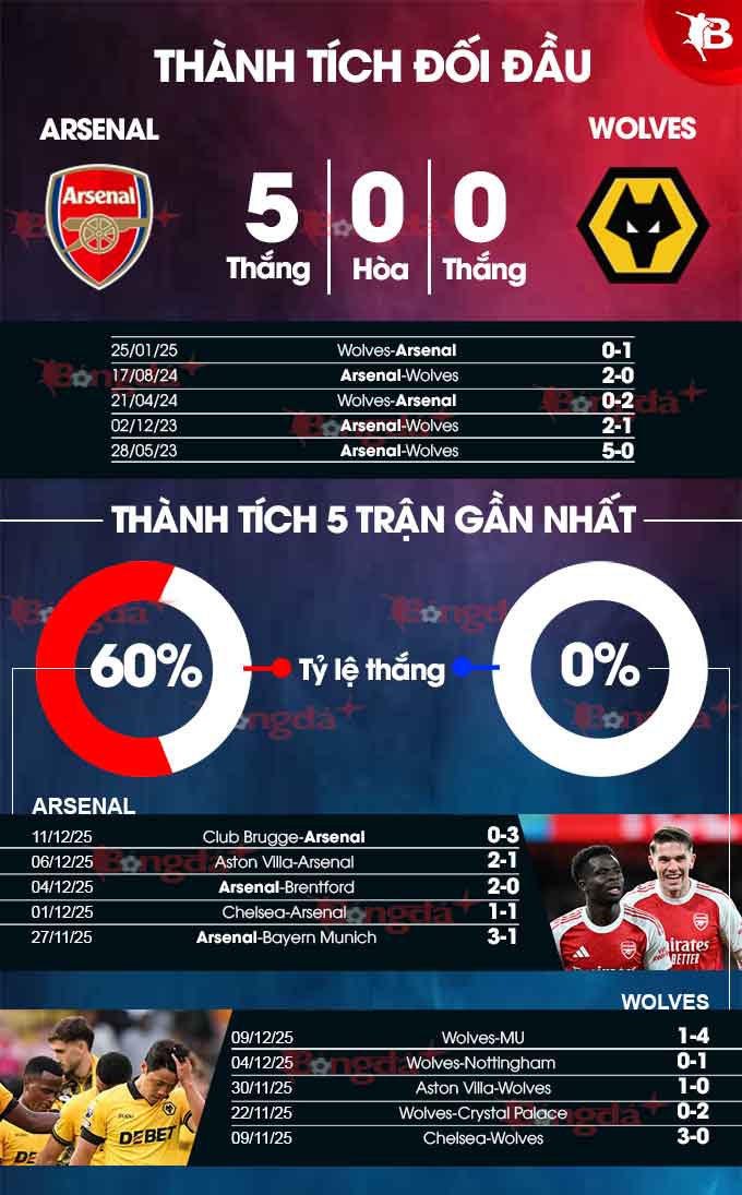 Với hàng công “cùn” nhất giải (mới ghi được 8 bàn thắng) và hàng thủ tệ nhất giải (đã thủng lưới 33 lần), Wolves không có dù chỉ một chút hy vọng làm nên bất ngờ trước chủ nhà Arsenal – đội bóng toàn thắng trước họ trong cả 8 cuộc đụng độ gần đây tại giải Ngoại hạng Anh. Nhiều khả năng đây là trận đấu mà Pháo thủ sẽ thắng vang dội.