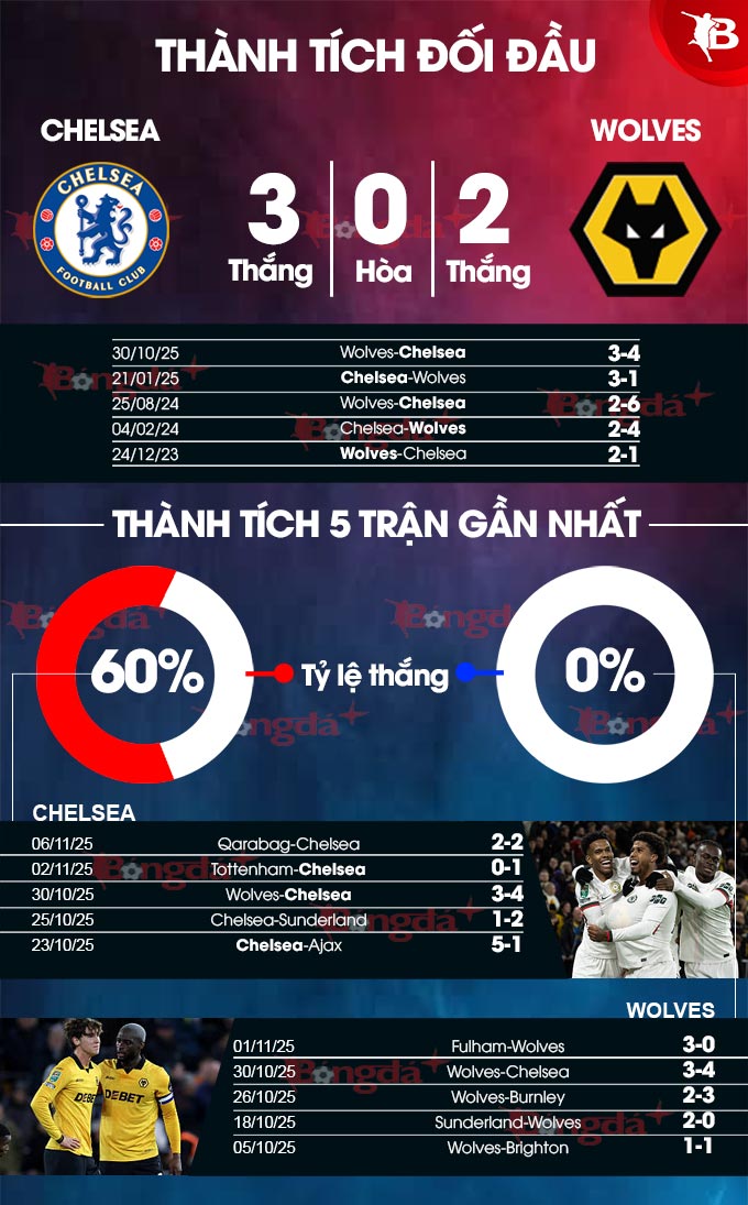 Trước đội khách Wolves đang trong tình trạng không có thuyền trưởng và phong độ bết bát thời gian gần đây, Chelsea với ưu thế sân nhà đang có cơ hội lớn để hướng đến chiến thắng và trở lại đường đua vô địch Ngoại hạng Anh.