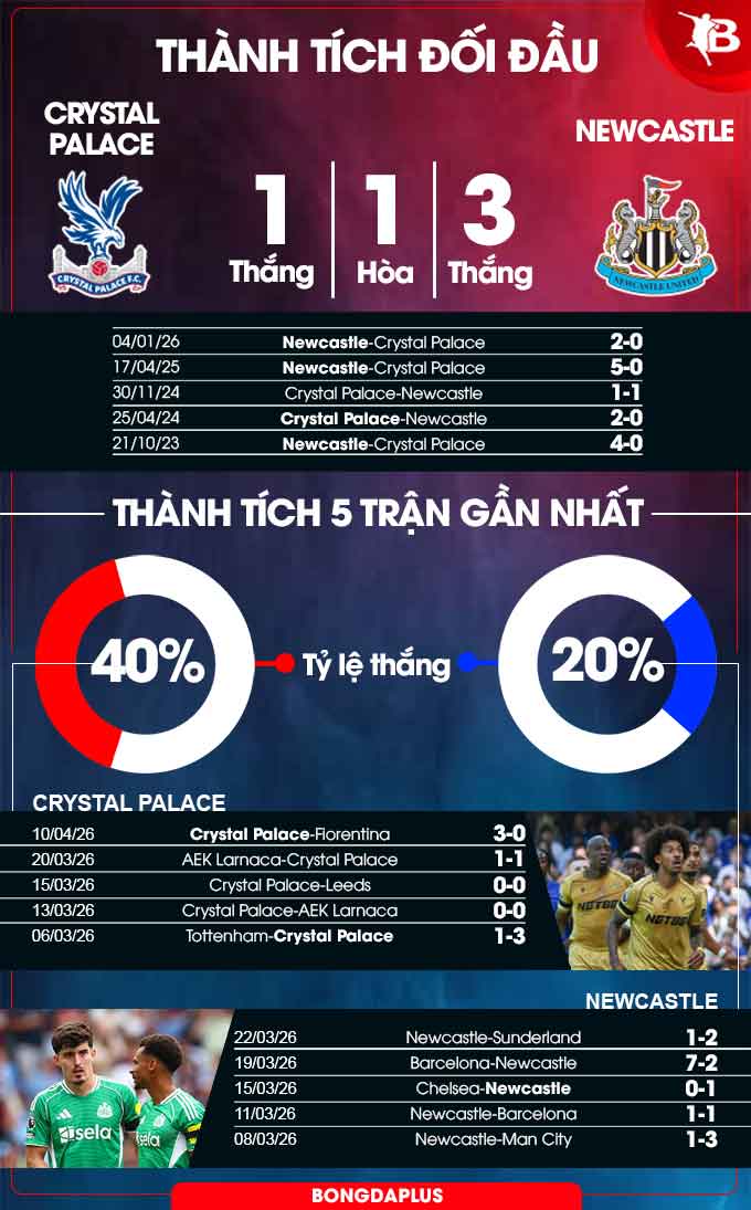Phân tích phong độ Crystal Palace vs Newcastle