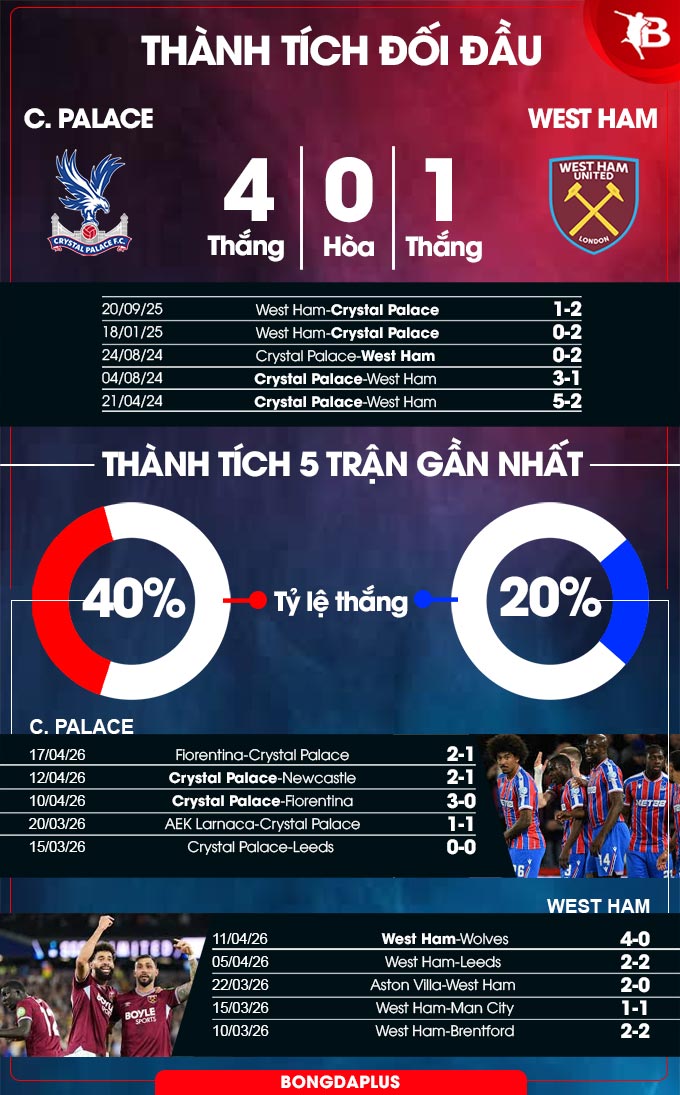 Phân tích phong độ Crystal Palace vs West Ham