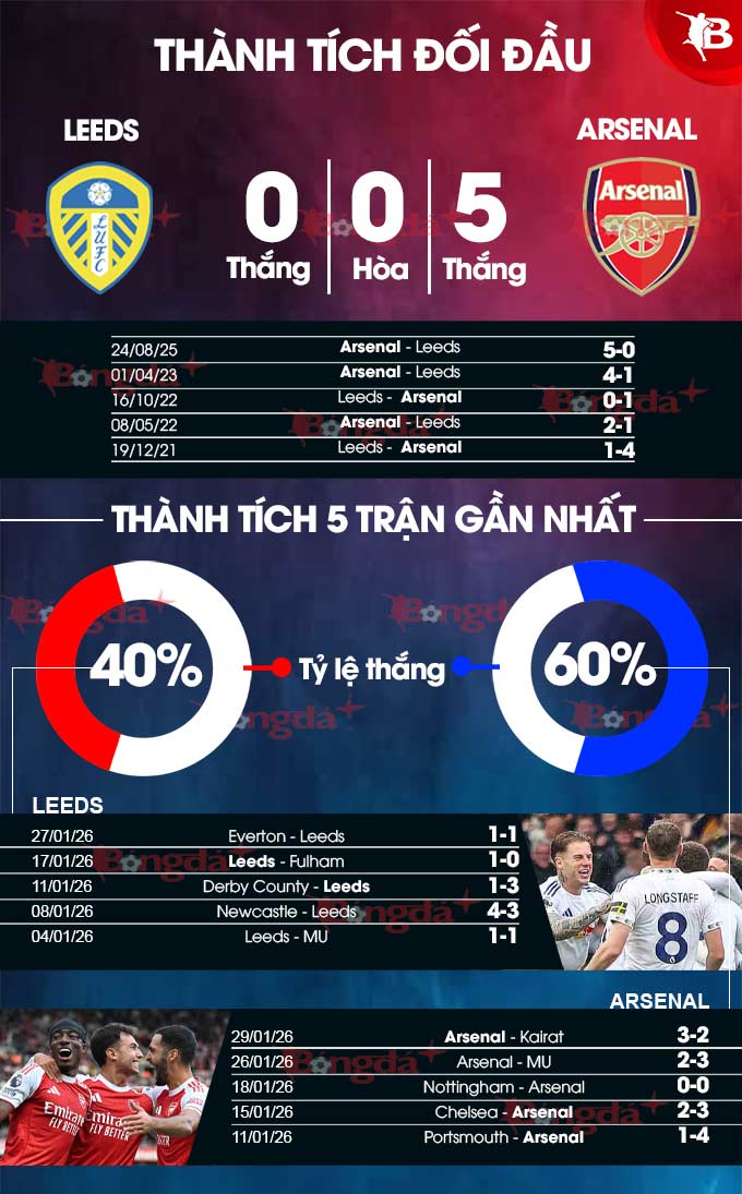 Trong bối cảnh đó, việc Arsenal phải tới làm khách trên sân Leeds vòng này chắc chắn là chuyến đi đầy cạm bẫy. Leeds đã lột xác trong 2 tháng trở lại đây. Bằng chứng là trong 11 trận gần nhất thì Leeds chỉ thua 1, thắng 4. Trong giai đoạn này, Leeds đã 2 lần lấy điểm trước Liverpool, đánh bại Chelsea, cầm hoà MU và khiến Man City toát mồ hôi mới có thắng lợi 3-2. Đây chắc chắn sẽ là đối thủ khiến Arsenal gặp nhiều khó khăn.