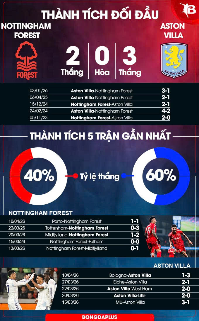 Nhìn chung, đây là trận đấu mà Nottingham Forest không có nhiều cơ hội giành điểm. Aston Villa sẽ áp đảo và sẽ giành 3 điểm rời City Ground để tiếp tục củng cố hy vọng giành tấm vé dự Champions League mùa tới.