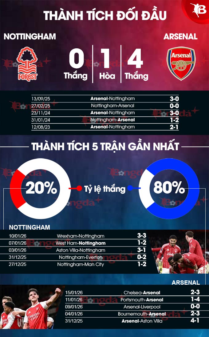 Trước một Nottingham đang chạm đấy của thất vọng sau khi bị đối thủ yếu loại ở FA Cup, một Arsenal thi đấu bùng nổ trên mọi đấu trường đang có cơ hội rất tốt để tìm kiếm chiến thắng và củng cố ngôi đầu bảng, tiến gần hơn tới ngôi vương.