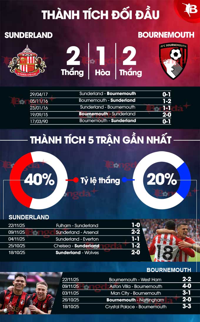 Phân tích phong độ Sunderland vs Bournemouth