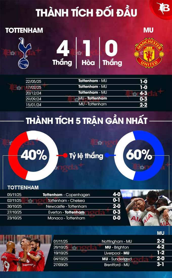 Mùa trước, MU đã thua Spurs trong cả 4 lần đụng độ. Trong đó, đau đớn nhất là thất bại ở trận chung kết Europa League 2024/25. Đây sẽ là cơ hội để Quỷ đỏ phục hận Tottenham.