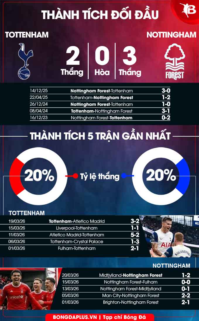 Ở 2 trận gần đây, Tottenham đều duy trì được thành tích bất bại trước những đối thủ lớn như Liverpool rồi đến Atletico. So với cặp đôi nói trên, Nottingham Forest là đội bóng tầm thường hơn nên cửa thắng của Tottenham nhìn chung khá sáng.