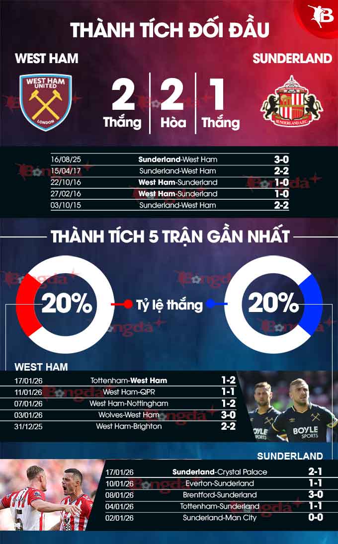 Phân tích dữ liệu chuyên sâu West Ham vs Sunderland