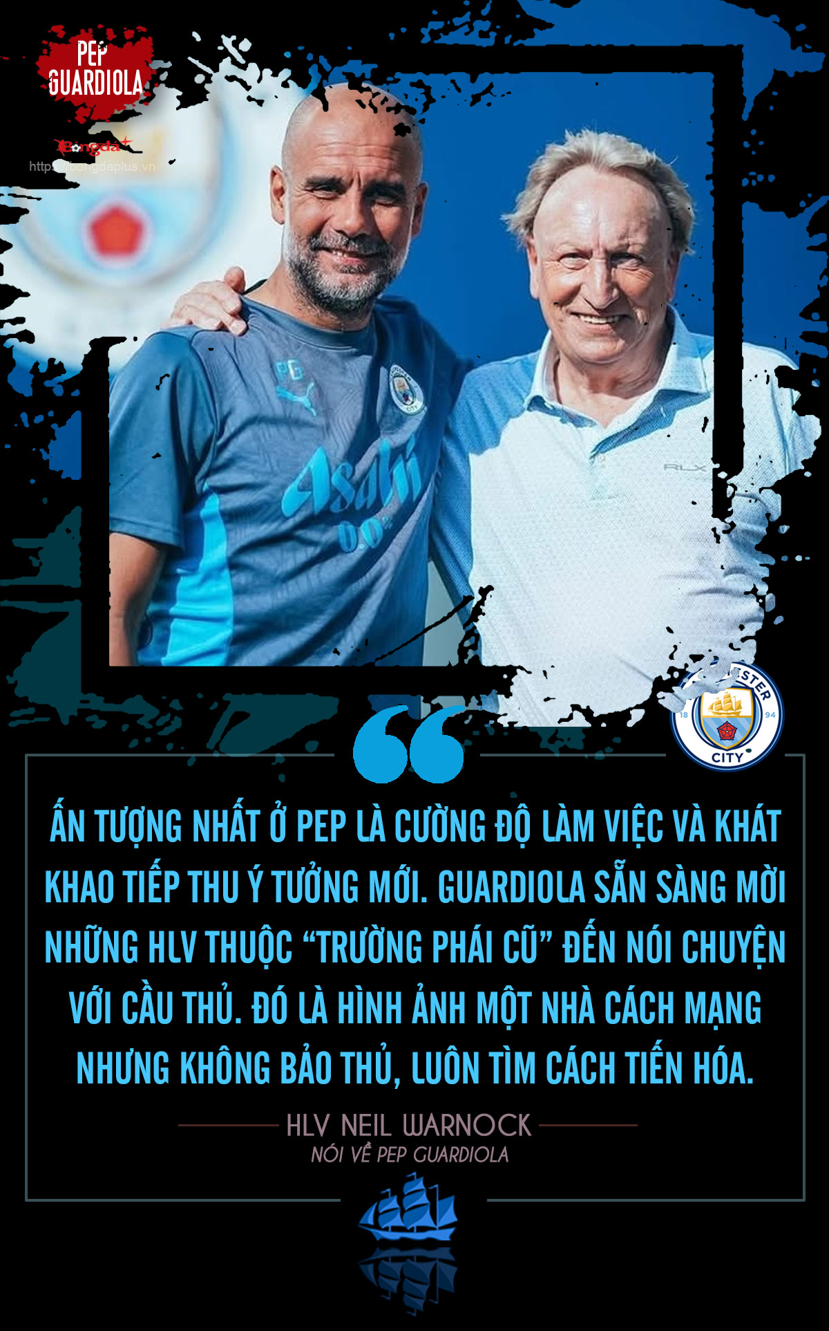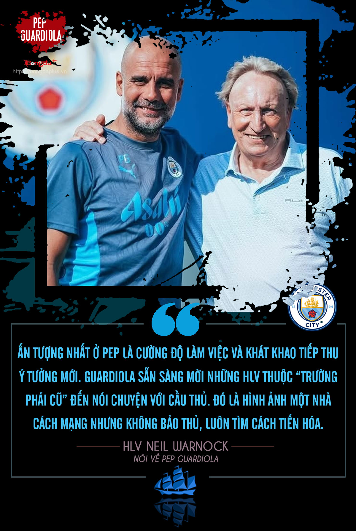 Ngay cả những người đại diện cho trường phái bóng dài truyền thống như Neil Warnock cũng dành sự tôn trọng lớn cho Guardiola. Mối quan hệ thân thiết giữa hai người – một biểu tượng của bóng đá trực diện, một kiến trúc sư của lối chơi kiểm soát – cho thấy Pep không chỉ áp đặt triết lý, mà còn không ngừng học hỏi.