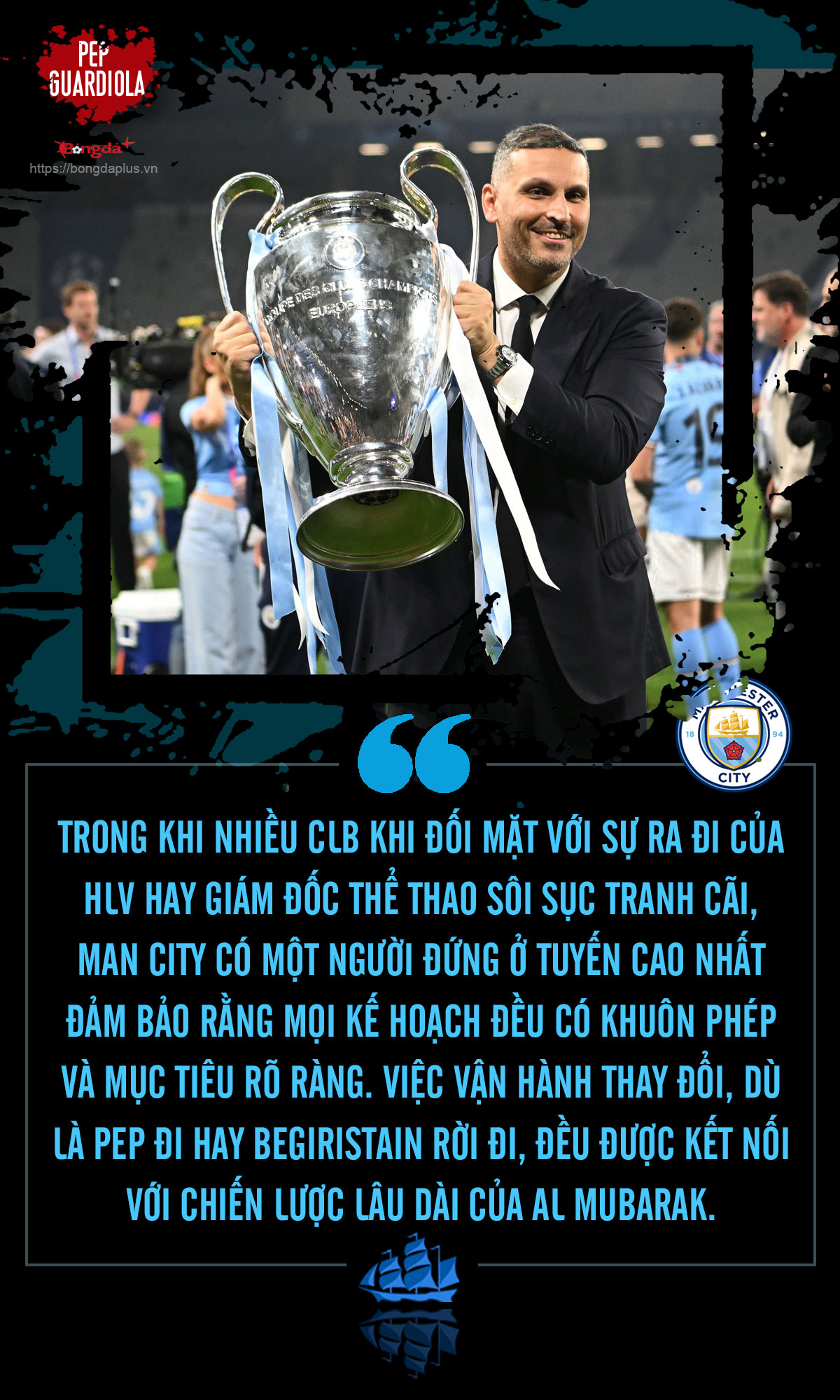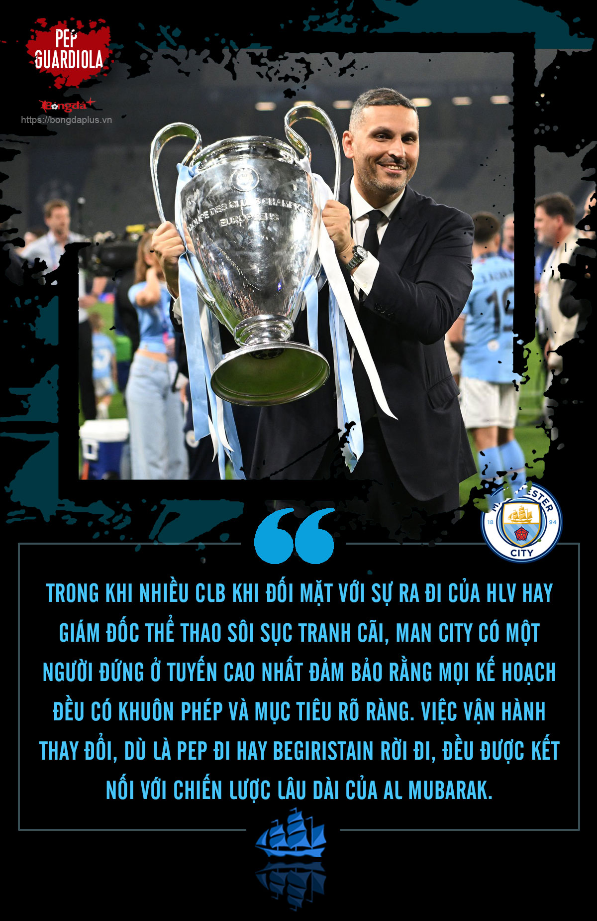 Trong khi nhiều CLB khi đối mặt với sự ra đi của HLV hay giám đốc thể thao sôi sục tranh cãi, Man City có một người đứng ở tuyến cao nhất đảm bảo rằng mọi kế hoạch đều có khuôn phép và mục tiêu rõ ràng. Việc vận hành thay đổi, dù là Pep đi hay Begiristain rời đi, đều được kết nối với chiến lược lâu dài của Al Mubarak.