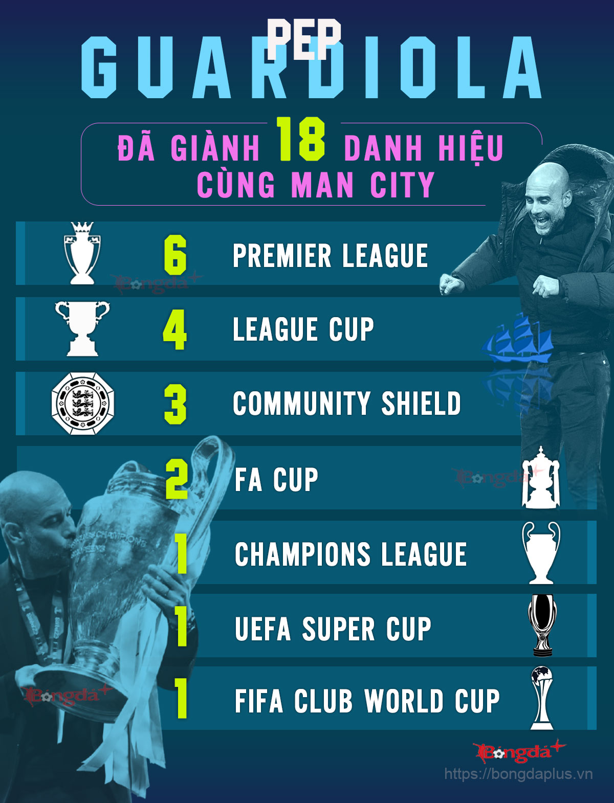 Đỉnh cao là mùa 2017/18 với 100 điểm, kỷ lục Premier League, mở đầu cho chuỗi 6 chức vô địch quốc nội trong vòng 7 mùa. Đó không chỉ là chiến thắng về mặt kết quả, mà còn là chiến thắng của một hệ tư tưởng chơi bóng.