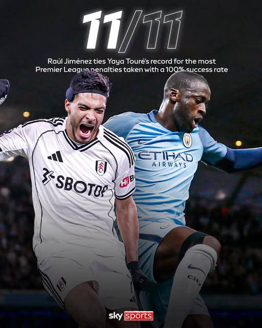 Bàn thắng ấy không chỉ đem lại 3 điểm. Nó đưa Jimenez bước vào một vùng lãnh thổ “neo người” bậc nhất trong lịch sử Premier League. Với cú đá trước Forest, Jimenez đã thực hiện thành công 11/11 quả penalty tại Premier League. Anh chính thức san bằng kỷ lục của Yaya Touré, trở thành cầu thủ duy nhất bên cạnh huyền thoại người Bờ Biển Ngà đạt tỷ lệ 100% sau khi thực hiện ít nhất 10 quả phạt đền.