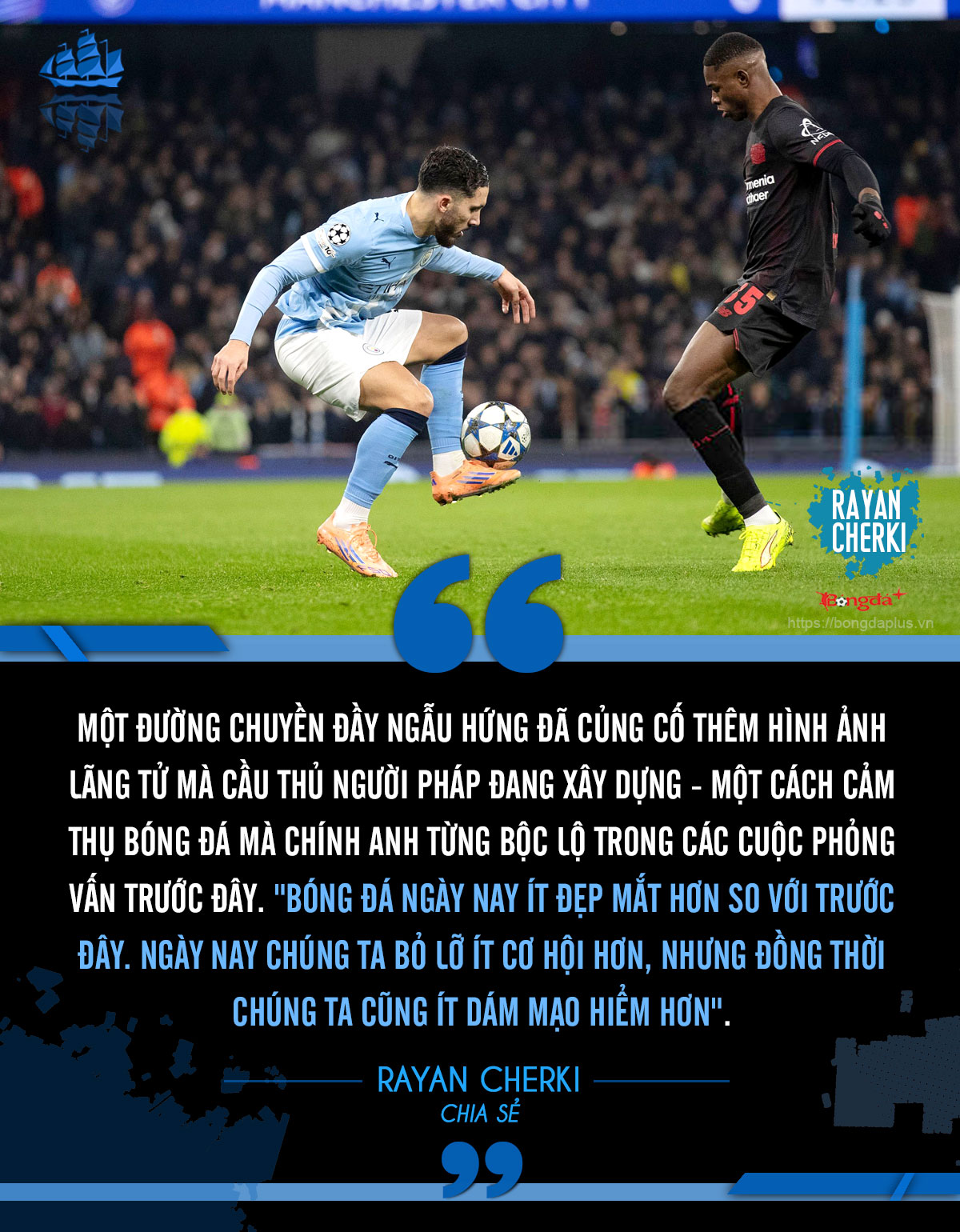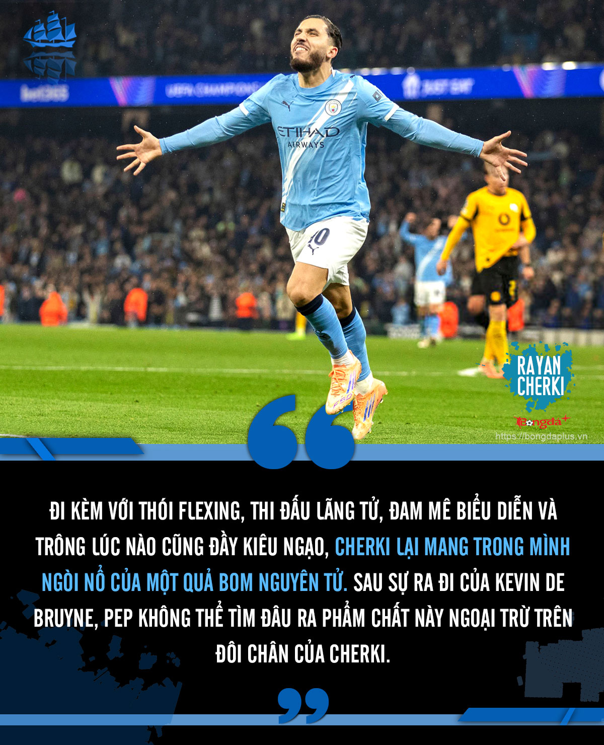 Kể từ khi đặt chân đến Man City, Rayan Cherki đã ngay lập tức tạo nên cơn sốt. Anh thi đấu với sự tự tin, phong thái đĩnh đạc và trên hết là lối đá mang tính giải trí cao. Trong khi các HLV ngày nay, đặc biệt là Guardiola, thường biến bóng đá thành một bàn cờ với những quy tắc gò bó, Cherki lại là một "linh hồn tự do". Anh được gọi là "Pleasure Man" (Người mang lại niềm vui) vì triết lý: "Tôi chơi bóng để tìm kiếm niềm vui và trao đi niềm vui cho mọi người".