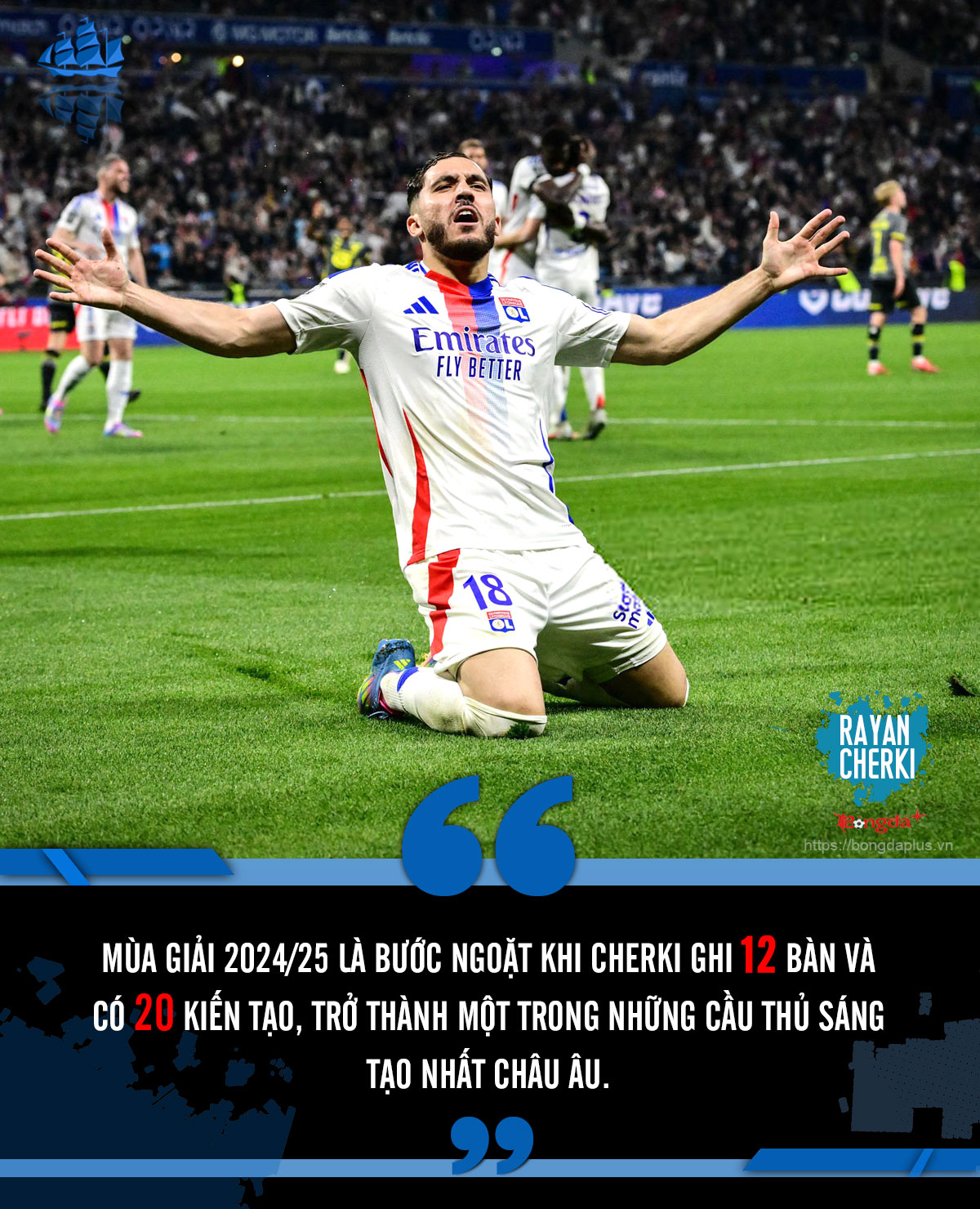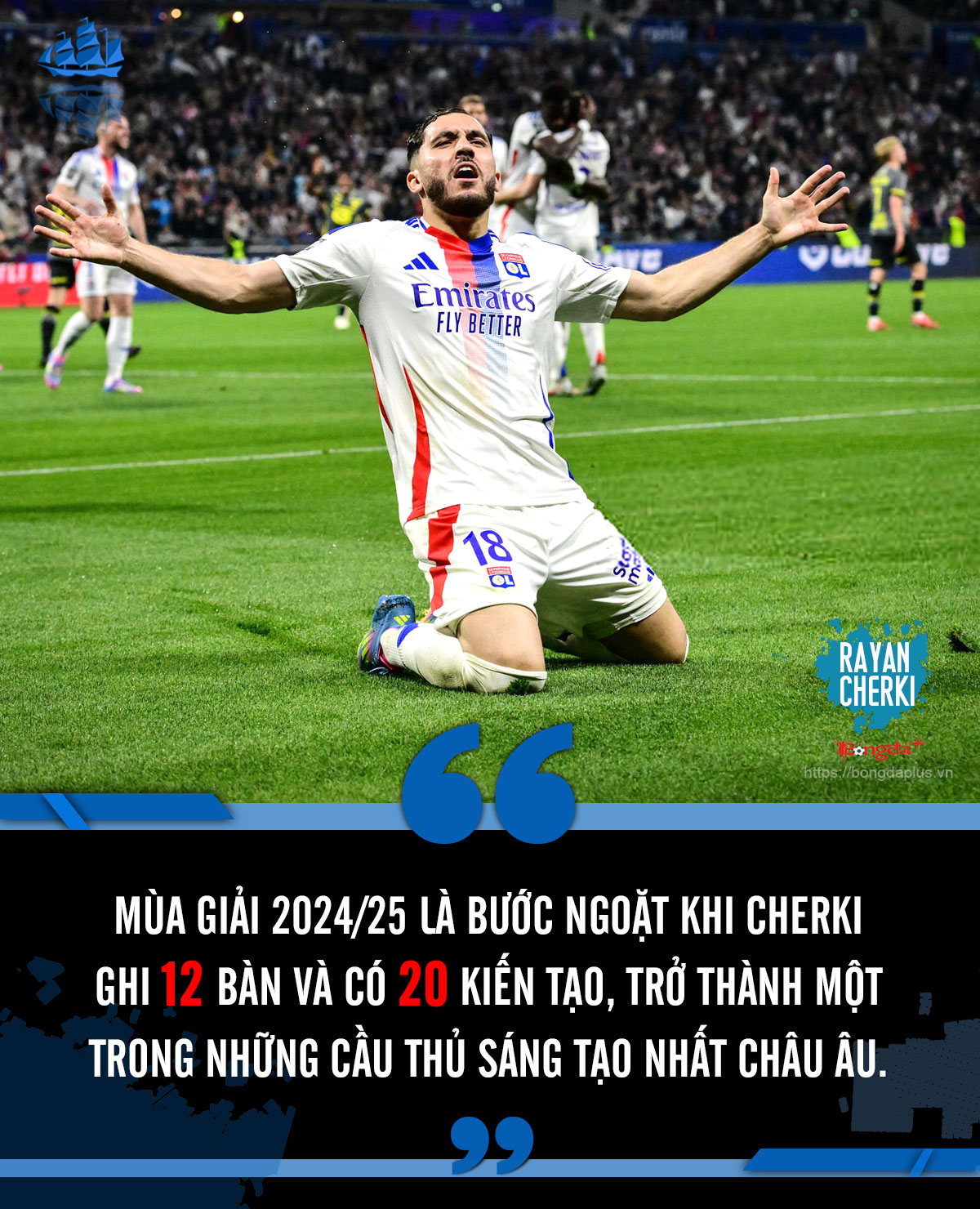 Mùa giải 2024/25 là bước ngoặt khi Cherki ghi 12 bàn và có 20 kiến tạo, trở thành một trong những cầu thủ sáng tạo nhất châu Âu. Đến tháng 6 năm 2025, điều mà mọi người chờ đợi đã đến: Rayan Cherki chính thức gia nhập Man City.