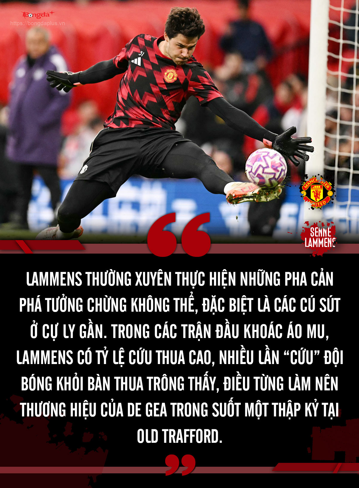 Giống De Gea thời đỉnh cao, Lammens thường xuyên thực hiện những pha cản phá tưởng chừng không thể, đặc biệt là các cú sút ở cự ly gần. Trong các trận đầu khoác áo MU, Lammens có tỷ lệ cứu thua cao, nhiều lần “cứu” đội bóng khỏi bàn thua trông thấy, điều từng làm nên thương hiệu của De Gea trong suốt một thập kỷ tại Old Trafford.