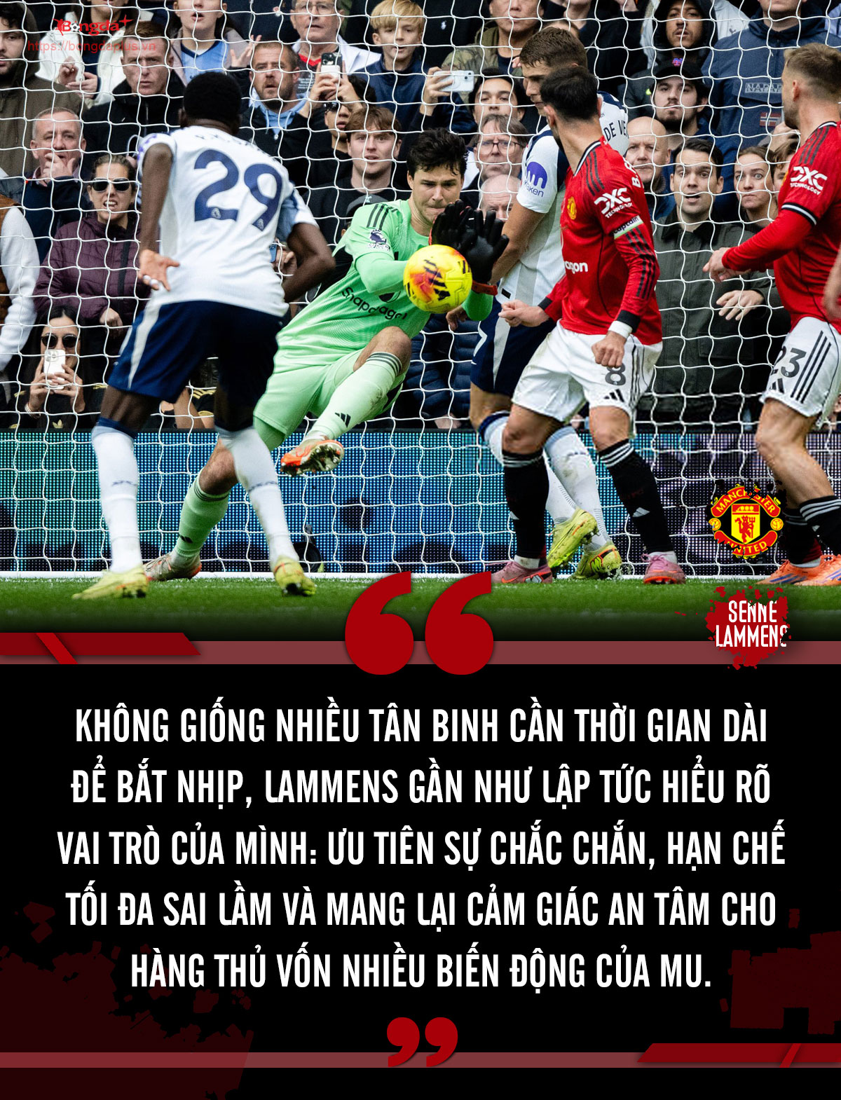 Không giống nhiều tân binh cần thời gian dài để bắt nhịp, Lammens gần như lập tức hiểu rõ vai trò của mình: ưu tiên sự chắc chắn, hạn chế tối đa sai lầm và mang lại cảm giác an tâm cho hàng thủ vốn nhiều biến động của MU.