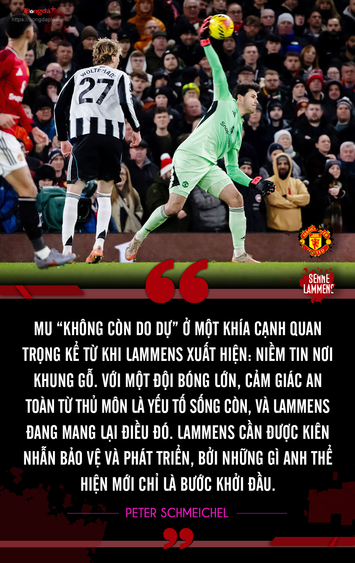 Nếu cần một minh chứng rõ ràng nhất cho sự thích nghi của Lammens, đó chính là màn trình diễn rực sáng trước Newcastle. Ở trận đấu này, Lammens đã có hàng loạt pha cứu thua quan trọng, góp công lớn giúp MU đánh bại đối thủ cạnh tranh trực tiếp một suất trong top 4.