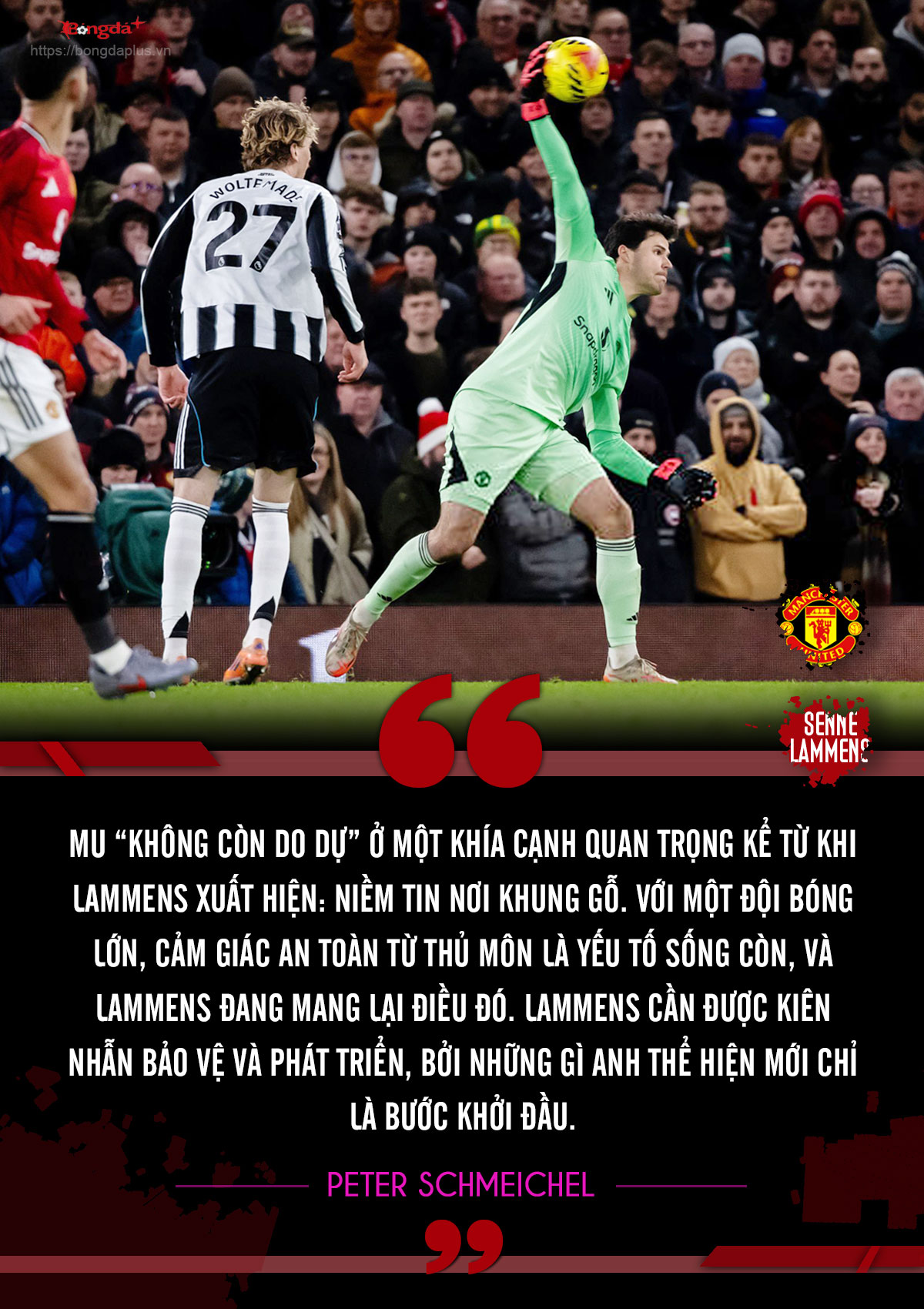 Trong trận đấu này, Lammens không chỉ thể hiện phản xạ xuất sắc mà còn cho thấy bản lĩnh thi đấu. Trước sức ép liên tục từ Newcastle, anh vẫn giữ được sự bình tĩnh, chọn vị trí hợp lý và xử lý dứt khoát. Đó là hình ảnh hiếm thấy ở một thủ môn trẻ mới đặt chân tới Old Trafford.