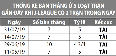 Tài loạt trận J-League Giải VĐQG Nhật Bản hôm nay có 2 trận (Cerezo Osaka - Sagan Tosu và Jubilo Iwata - Shonan Bellmare). 4 lần gần nhất mà giải J-League có đúng 2 trận trong ngày, tổng số bàn thắng luôn lớn hơn tỷ lệ tài/xỉu của loạt trận, tức loạt trận nổ tài. Dựa theo công thức kinh nghiệm, có thể đoán trước tỷ lệ tổng bàn thắng loạt trận J-League hôm nay sẽ là 4 3/4, nhất định 2 trận kể trên sẽ có tối thiểu 5 bàn thắng.