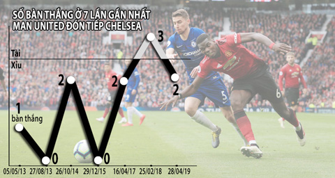 Ngoài ra, 6/7 lần gần nhất Chelsea đến làm khách trên sân của Quỷ đỏ cũng chỉ có tối đa 2 bàn. Đó là những thống kê có sức nặng để khẳng định trận thư hùng tại sân Old Trafford đêm nay sẽ không vượt qua cột mốc 2 1/2 bàn thắng.