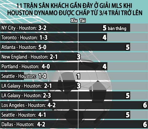 Trận này chủ nhà Philadelphia chấp Houston Dynamo 1 trái bóng. Trong 11 trận sân khách gần đây ở giải MLS khi Houston Dynamo được chấp từ 3/4 trái bóng trở lên, có đến 9 trận đã nổ tài. Ở trận cầu gần nhất diễn ra vào sáng thứ Sáu vừa qua, Houston Dynamo được New York City chấp 1 trái bóng, đôi bên đã cống hiến một trận cầu tưng bừng với 5 bàn thắng (New York City thắng 3-2).