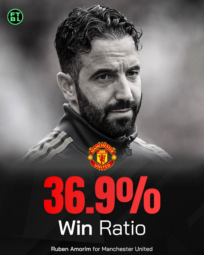 Không còn nghi ngờ gì nữa, Amorim là HLV có tỷ lệ thắng thấp nhất trong lịch sử MU hậu Sir Alex. Chỉ 36,92%, con số này phản ánh một triều đại thất bại toàn diện. Amorim không chỉ gây thất vọng trên sân cỏ mà còn vướng vào tranh cãi gay gắt với ban lãnh đạo về chuyển nhượng và quyền lực. Mâu thuẫn nội bộ, lối chơi thiếu hiệu quả và sự sa sút niềm tin đã khiến ông ra đi chỉ sau chưa đầy 14 tháng.