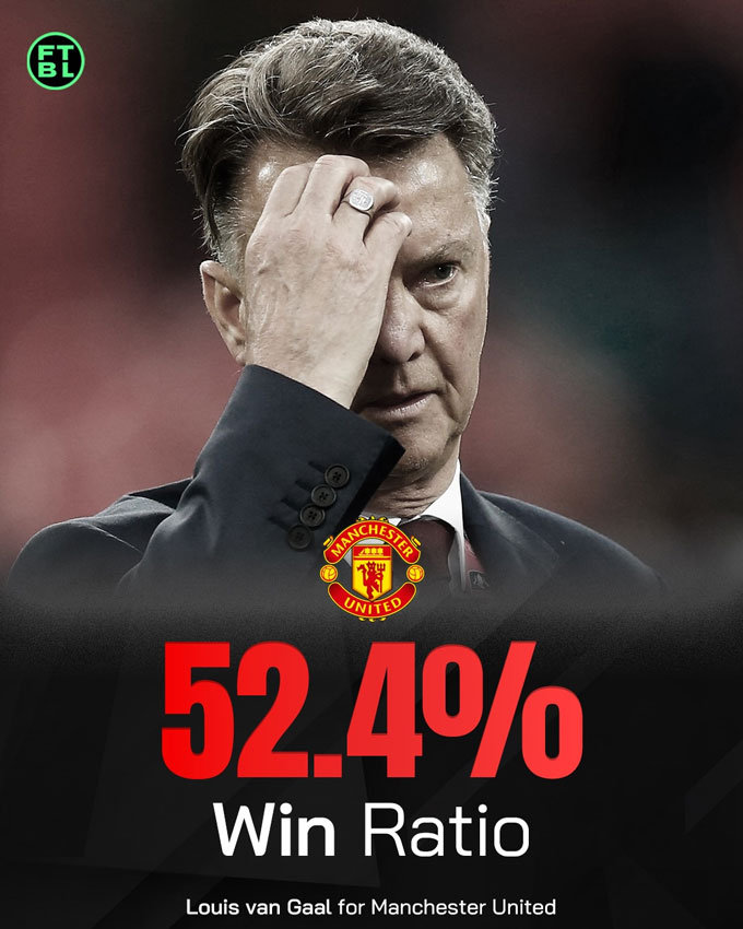 Dù bị chỉ trích nặng nề vì lối chơi kiểm soát bóng chậm chạp và thiếu cảm xúc, Louis van Gaal không phải là HLV tệ nhất của MU. Chiến lược gia người Hà Lan vẫn kịp mang về FA Cup 2015/16, danh hiệu hiếm hoi trong giai đoạn hậu Sir Alex. Tuy nhiên, sự cứng nhắc về chiến thuật và những trận đấu tẻ nhạt khiến ông không thể chiếm được cảm tình của CĐV, dù tỷ lệ thắng của ông vẫn ở mức trên trung bình.