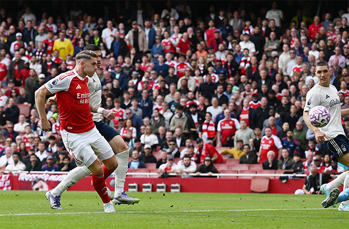Trên sân nhà nhưng Arsenal đang gặp khó trước Nottingham, đội đã chủ động đẩy cao đội hình để pressing ngay bên phần sân đối thủ.