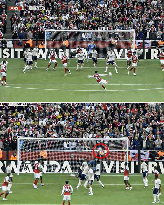 Thêm một tình huống bắt volley bóng sống của Zubimendi ngay sát mép vòng cấm, nhưng lần này bóng đi cầu âu rót xuống sát xà ngang trong sự nuối tiếc của NHM Arsenal.