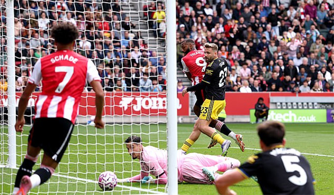 VÀOOO!!! Thêm mộ pha lên bóng rất tốc độ của các cầu thủ Brentford và một lần nữa Igor Thiago ghi tên mình lên bảng điện tử sau tình huống dứt điểm trong vòng cấm từ đường căng ngang ở đáy biên của Schade.