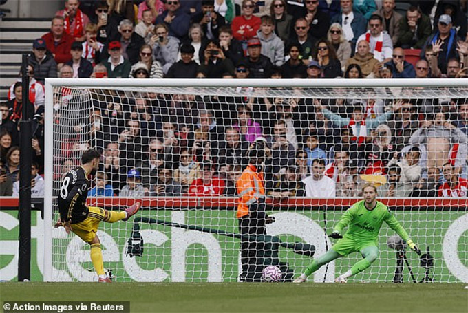Không vào!!! Trên chấm 11m đội trưởng Bruno Fernandes đã không thể thắng được Kelleher.