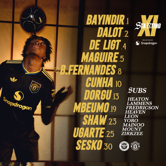 - MU (3-4-2-1): Bayindir; Ligt, Maguire, Shaw; Dalot, Casemiro, Bruno, Dorgu; Mbeumo, Diallo; Sesko.