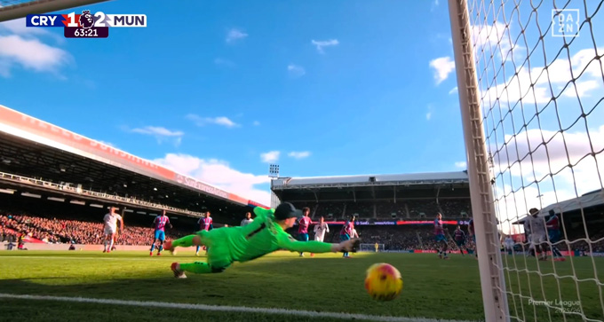 MU có pha phối hợp đá phạt rất tốt. Bruno gẩy bóng ra để Mount tung cú sút chìm đưa bóng đi thẳng vào khung thành của Palace trong sự bất lực của thủ thành Henderson.