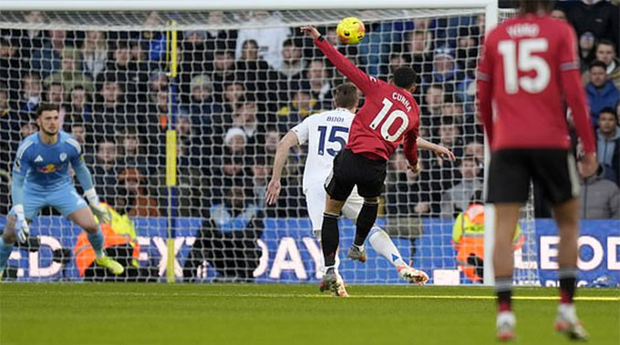 Cunha đã làm tung lưới Leeds sau cú vuốt bóng từ ngoài vòng cấm, nhưng đáng tiếc là đã có tình huống việt vị trước đó.