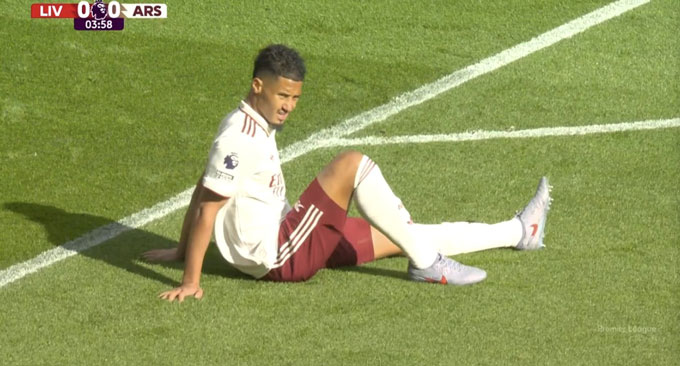 Arsenal buộc phải có sự thay đổi người bất đắc dĩ. Saliba chấn thương rời sân nhường chỗ cho tân binh Mosquera.