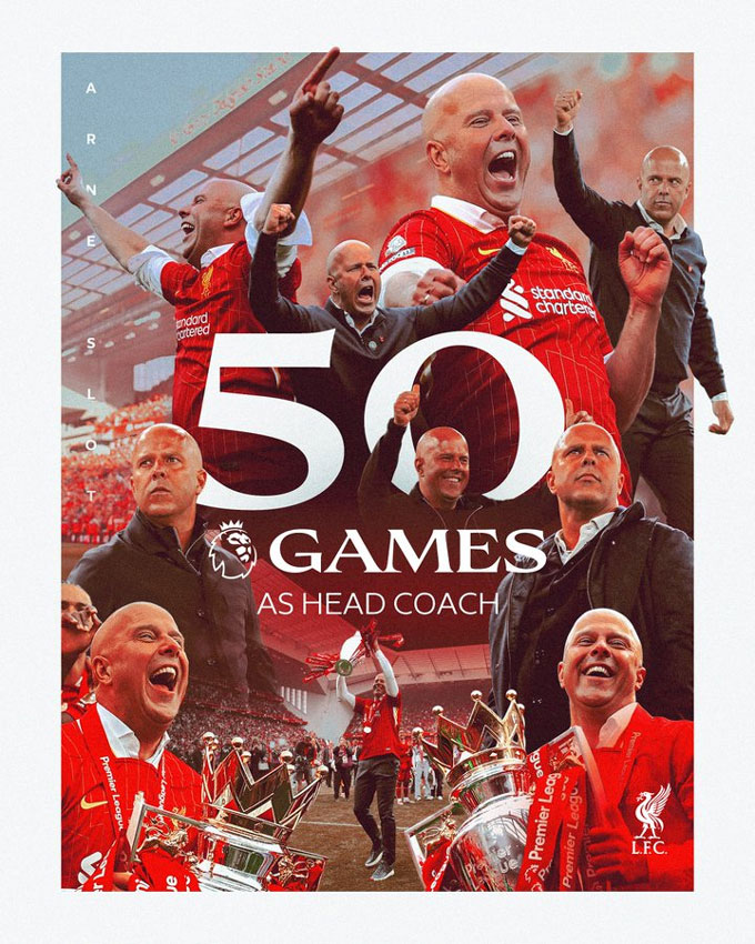 HLV Arne Slot sẽ có trận đấu thứ 50 tại Premier League