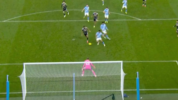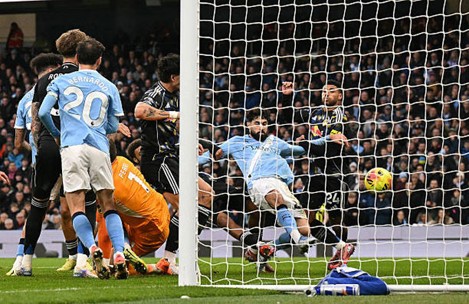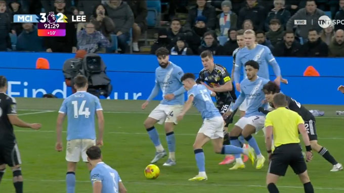 O'Reilly nỗ lực đi bóng bên cánh trái trước khi chuyền vào trong cho các đồng đội. Foden đệm bóng bị hậu vệ Leeds cản phá và sau đó Nico Gonzalez băng vào đá bồi cũng không thành công.