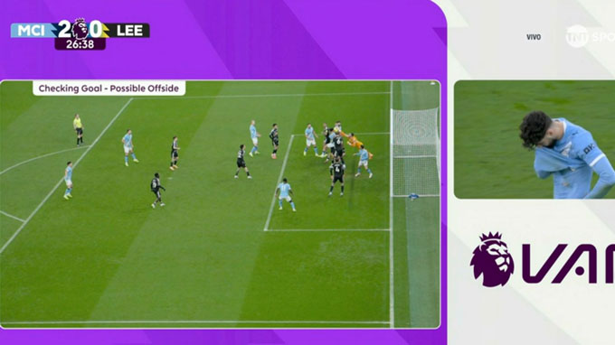 Trọng tài đã xem lại qua VAR để xem có lỗi trong bàn thắng của Gvardiol hay không. Sau cùng, ông vẫn quyết định công nhận bàn thắng.